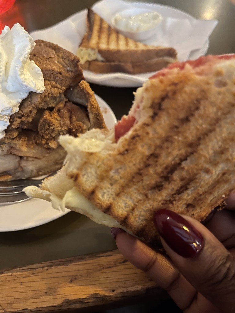 Une fois arrivĂ©e au restau je me suis faite plaiz avec ma big tarte aux pommes que j’ai accompagnĂ© d’un toasted sandwich cheese-salami et un americano đ€°đŸ