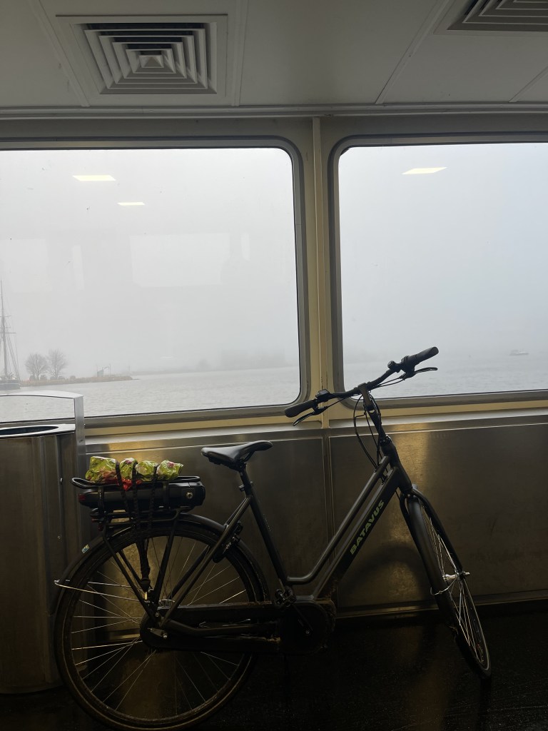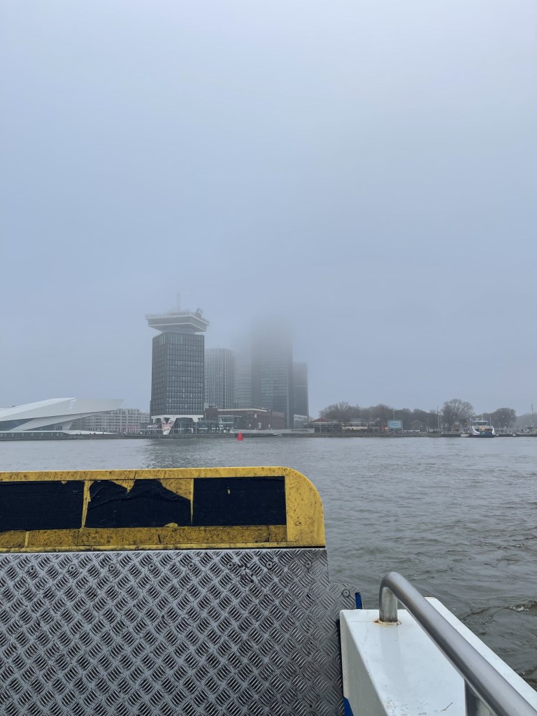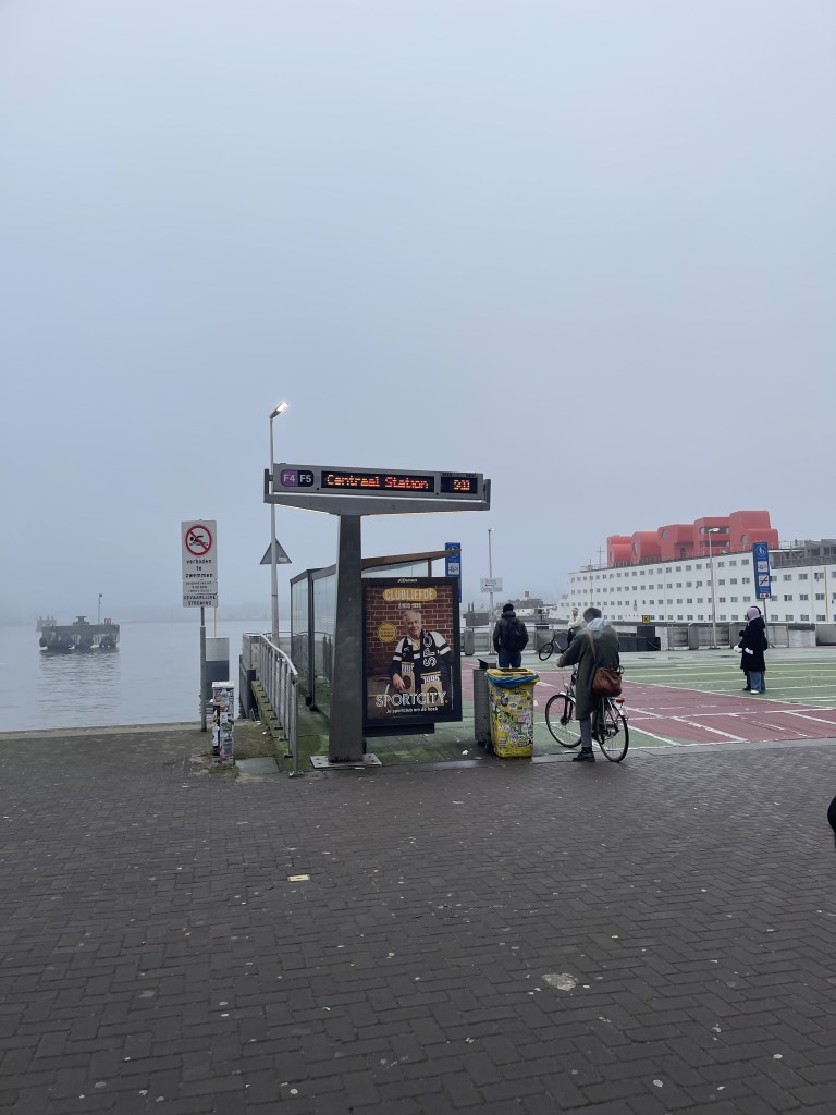 Une fois mon festin terminĂ©, j’ai quittĂ© le cafĂ© pour rejoindre la gare Centraal. C’Ă©tait Ă 15min Ă pieds donc c’est parti en petite marche digestive sous 5 degrĂ©s, une vibe. Une fois arrivĂ©e Ă la gare j’ai pris le ferry numĂ©ro 4, (le F4 pour les intimes) pour aller au nord d’Amsterdam.