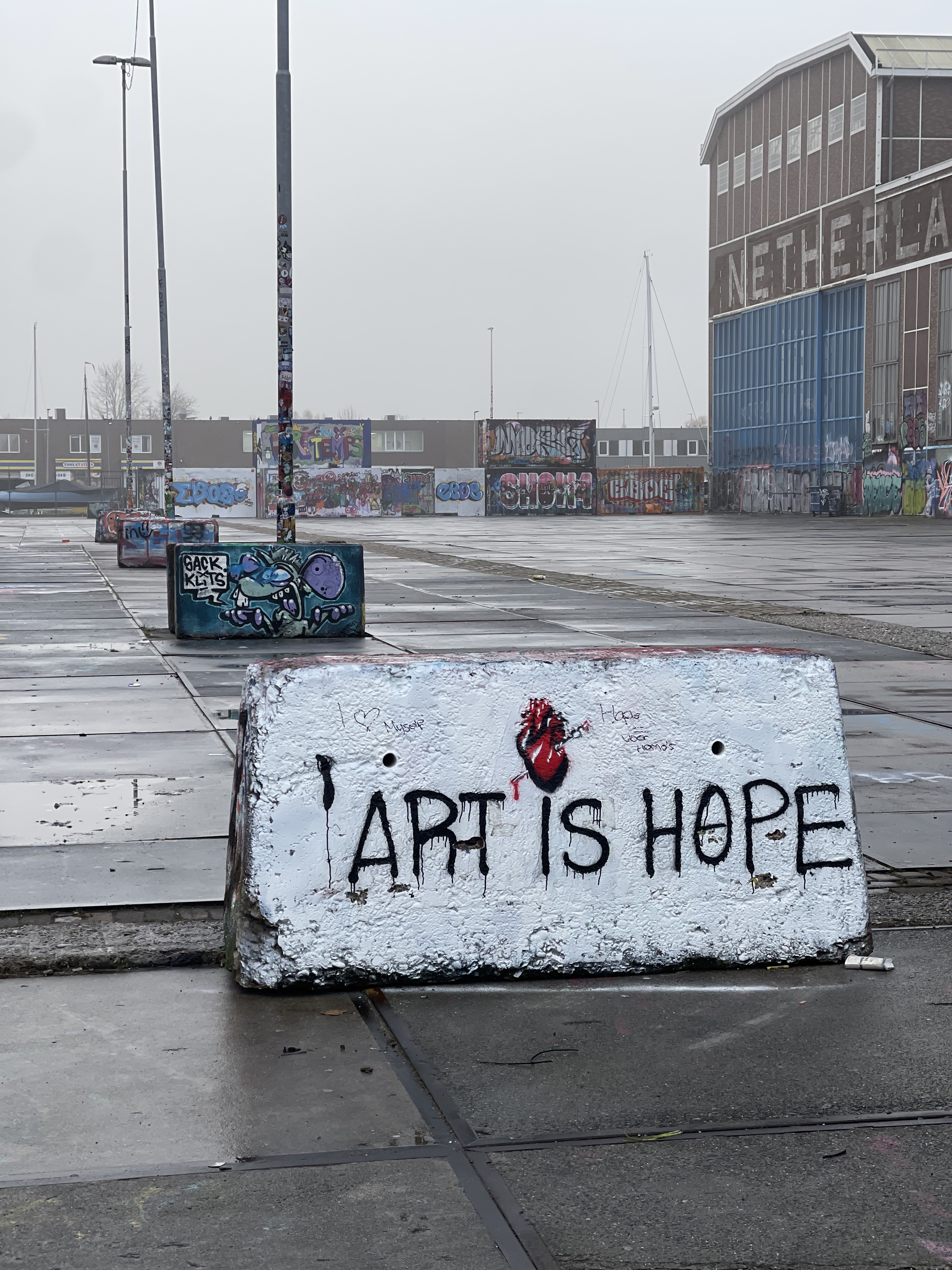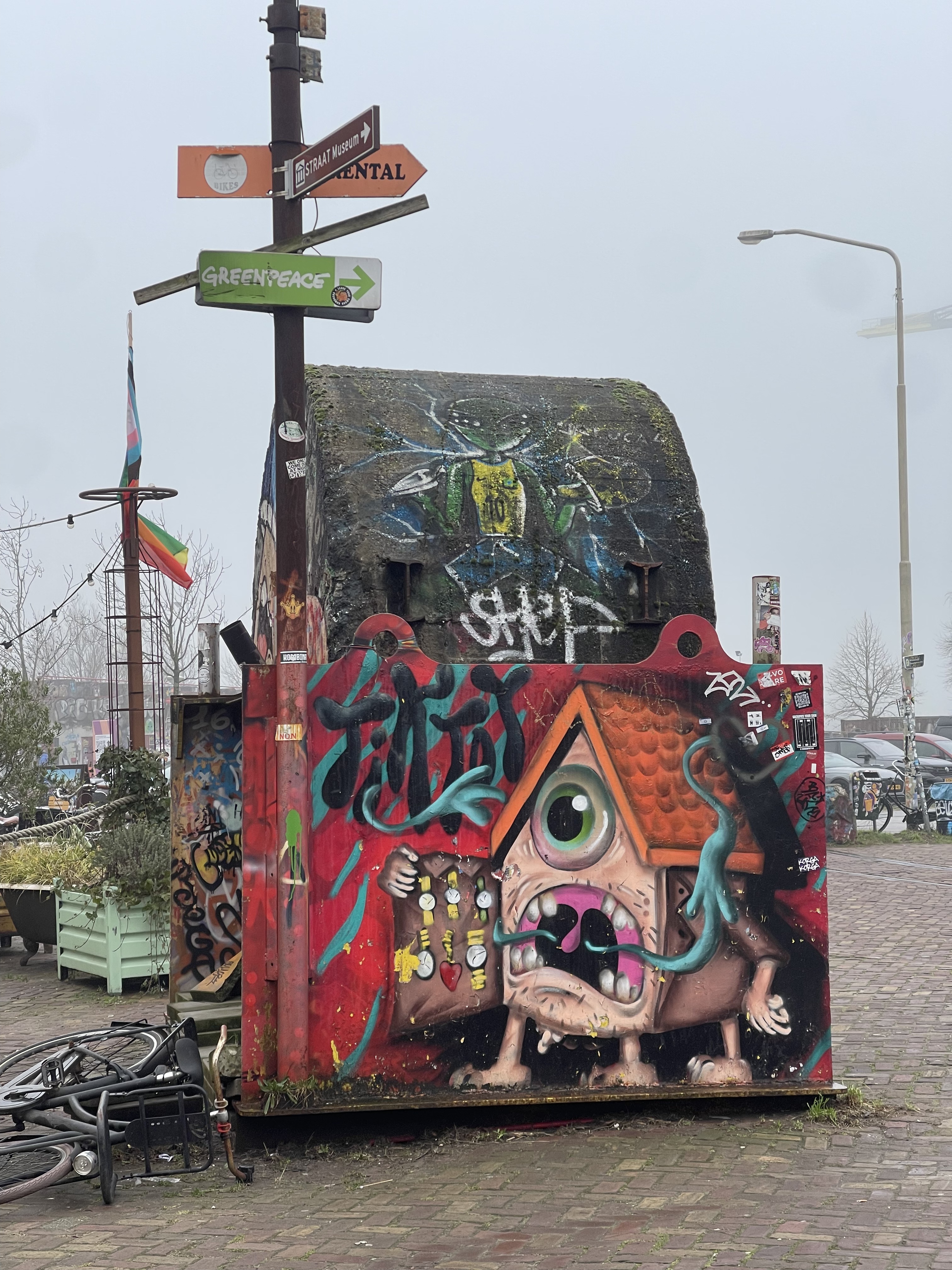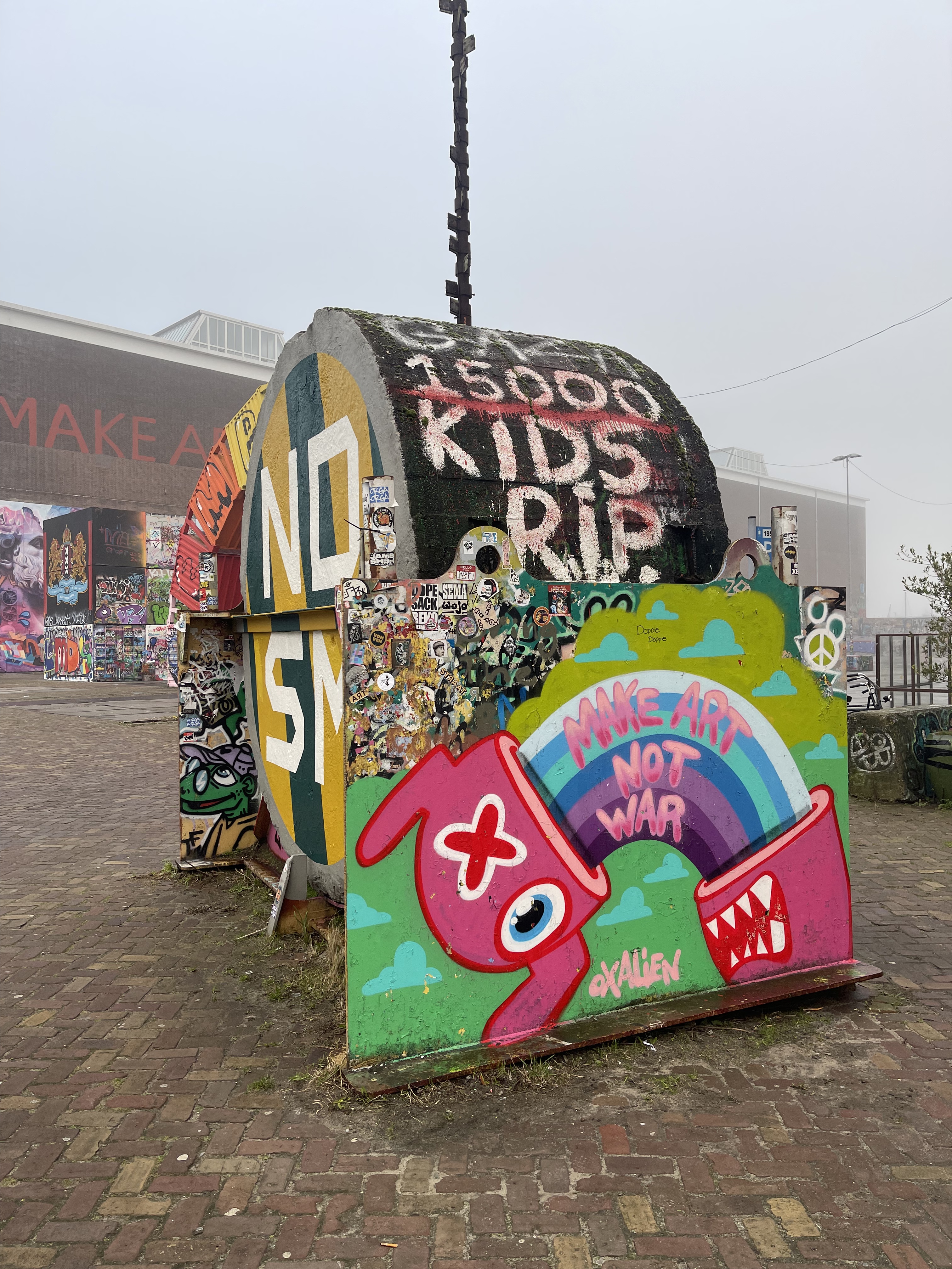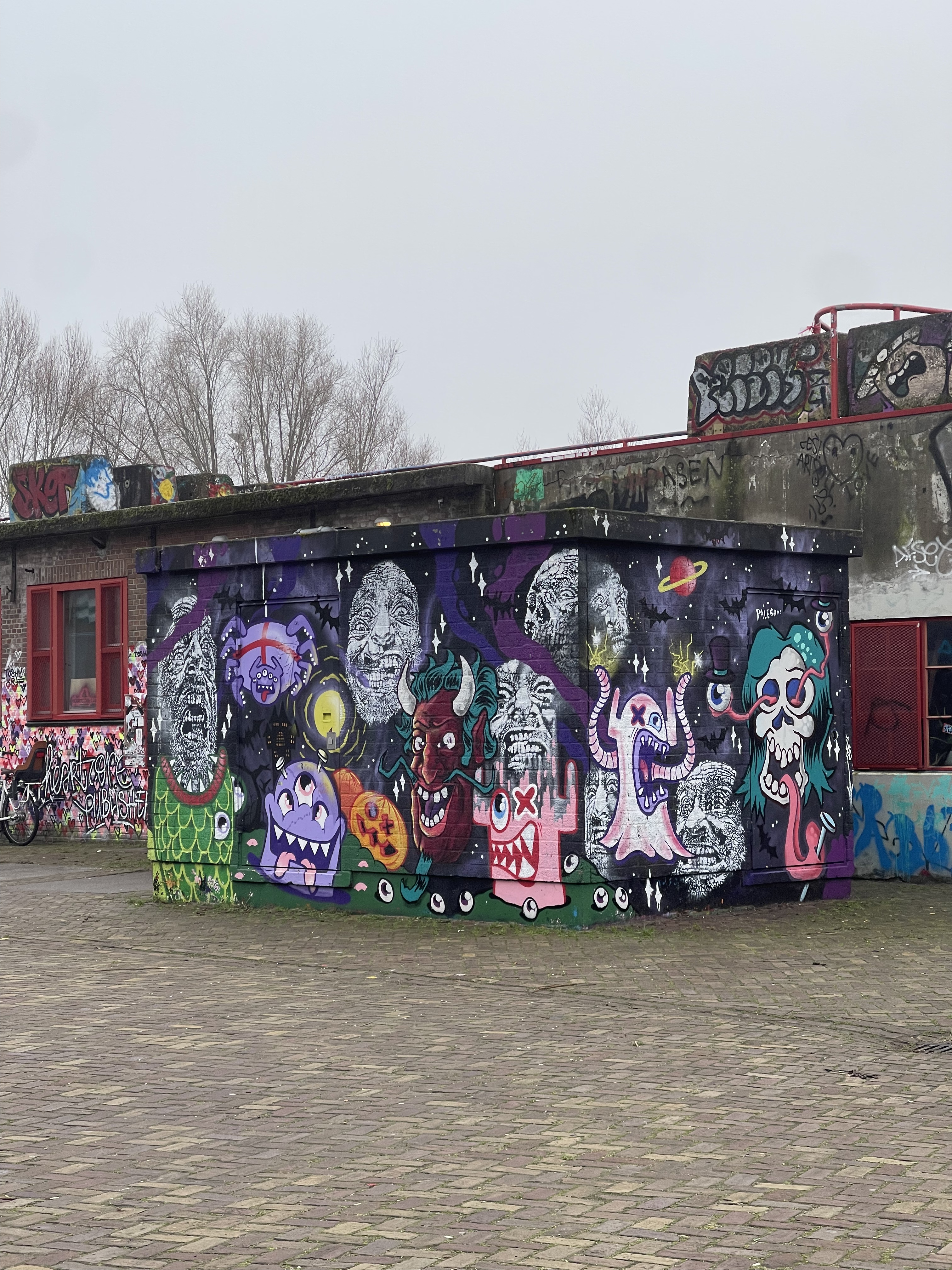 J’ai pris le Ferry pour aller Ă NDSM aka mon nouveau quartier prĂ©fĂ©rĂ© d’Amsterdam. Le NDSM c’est un ancien chantier naval qui s’est transformĂ© au fil des annĂ©es en quartier underground oĂč le street art rĂšgne. DĂ©jĂ moi il faut savoir que dĂšs qu’il y a du street art je suis la plus heureuse. J’ADORE le street art, les ambiances underground et l’urbex, et c’est exactement ce qu’on ressent quand on vient dans ce quartier. Apparemment il y a plein d’events qui ont lieu Ă cet endroit tout au long de l’annĂ©e. Le jour oĂč j’y suis allĂ©e il n’y avait pas d’animation mais il y avait du street art Ă gogo et on pouvait quand mĂȘme entrer dans le hangar donc je vous partage les photos que j’ai prises đ