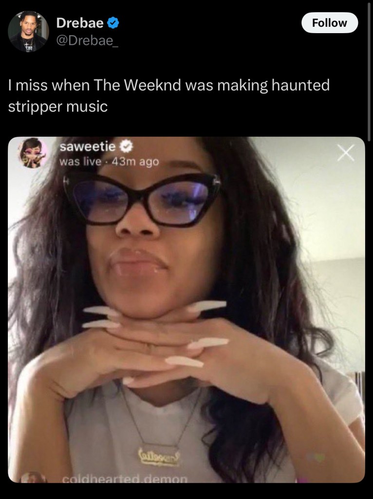 Wicked Games restera toujours mon TOP 1 de The Weeknd. C’est un banger qui est encore trop sous-côté à mes yeux. J’irais jusqu’à dire que c’est le titre qui représente le mieux The Weeknd.